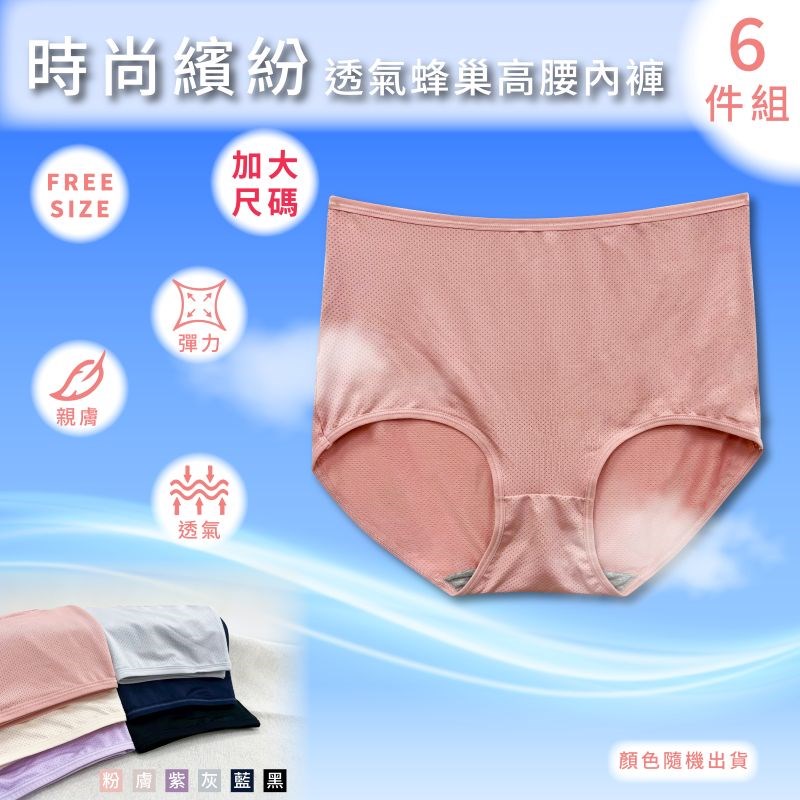 【卡妮兒】時尚繽紛透氣蜂巢高腰加大尺碼內褲 FREE(混色6件組)