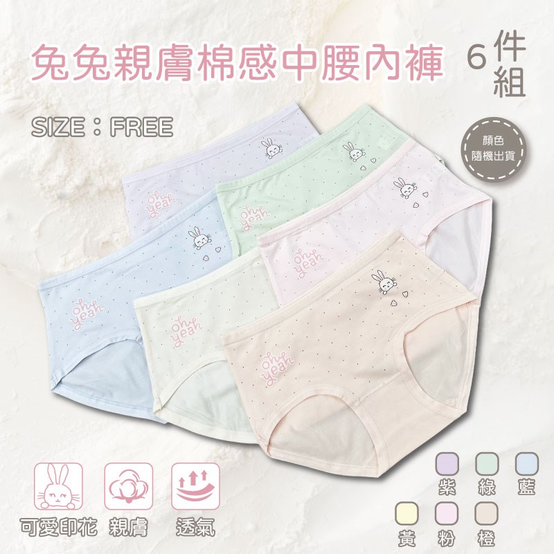 【卡妮兒】兔兔親膚棉感中腰內褲 FREE(混色6件組)