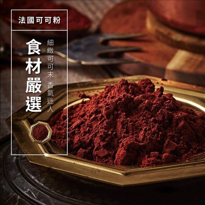 成分:70.1%調溫巧克力(可可膏、糖、可可脂、大豆卵磷脂、天然香草料)、牛奶、動物性鮮奶油(乳脂)、100%純苦巧克力(可可膏100%)、奶油、葡萄糖漿(葡萄糖、水)、防潮可可粉(可可粉、碳酸鉀(E501i))
