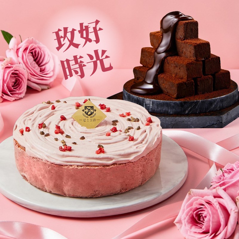 【起士公爵】〔玫好時光〕綻放玫荔乳酪蛋糕6吋+80厚藏生巧克力