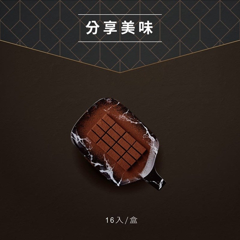 成分:70.1%調溫巧克力(可可膏、糖、可可脂、大豆卵磷脂、天然香草料)、牛奶、動物性鮮奶油(乳脂)、100%純苦巧克力(可可膏100%)、奶油、葡萄糖漿(葡萄糖、水)、防潮可可粉(可可粉、碳酸鉀(E501i))