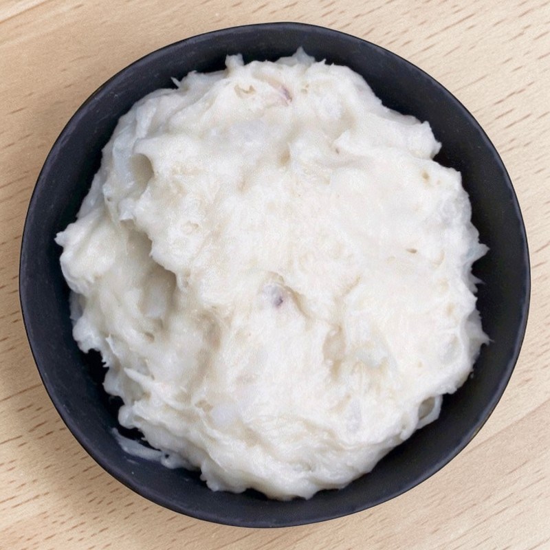 花枝漿質地細緻滑順,適合火鍋、創意料理、⾃製⼿⼯菜,可隨意塑形、變化多元!