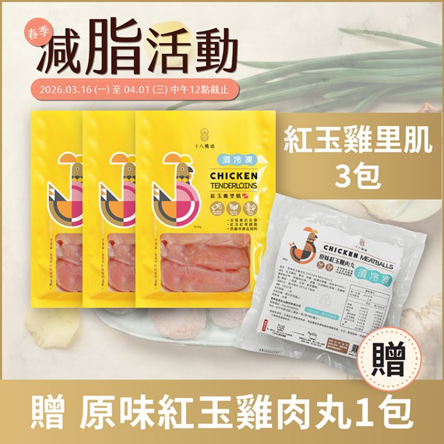 即日起~ 4/1中午,買里肌 x 3 加贈 雞肉丸 x 1。