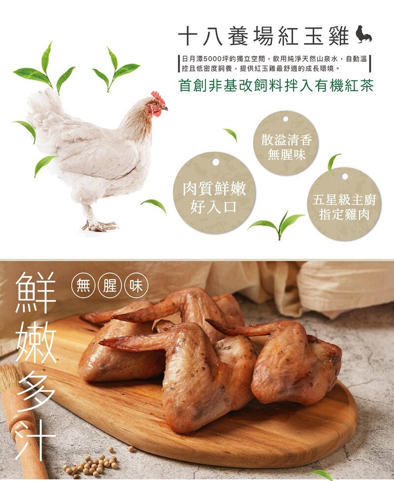 ◎全台首創:自養高品質紅玉雞,全程餵養非基改玉米黃豆。