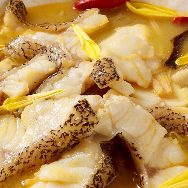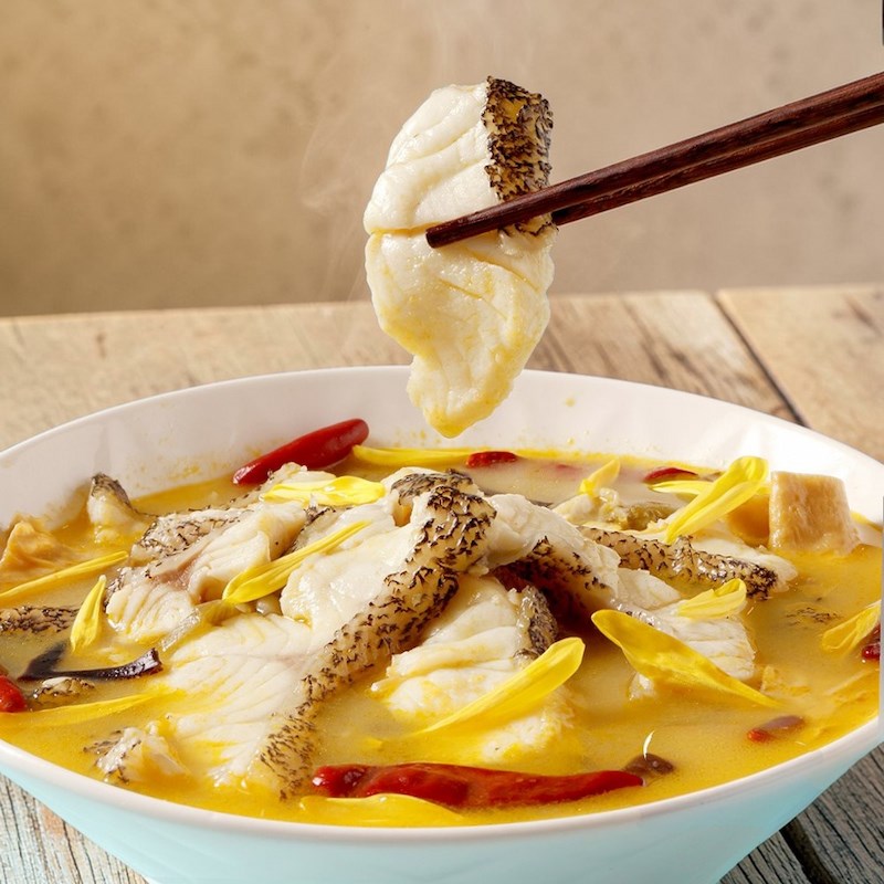 獨門酸菜湯底風味濃厚,脆口且帶有濃郁酸氣,花椒讓湯底有舒服的麻辣香氣,魚片涮入香醇的湯底,與酸爽的湯一同入口漫開在舌尖,酸中帶甜,辣而不燥,層次分明,一口接一口的好滋味。