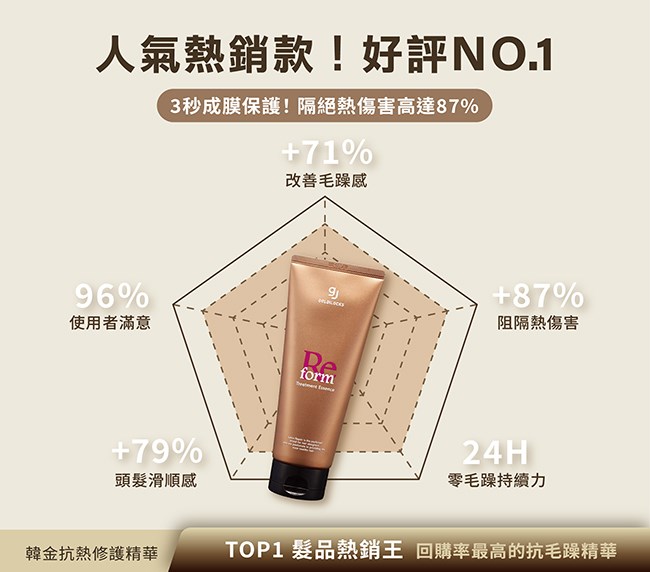 ★ 3效合一 ★ ✓抗熱   ✓抗毛躁  ✓修護