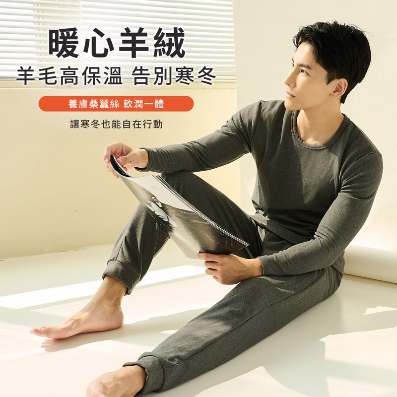 【黛瑪Daima】男生 (M-XXL)男圓領羊毛蠶絲恆溫蓄熱保暖衣-3色可選-5800