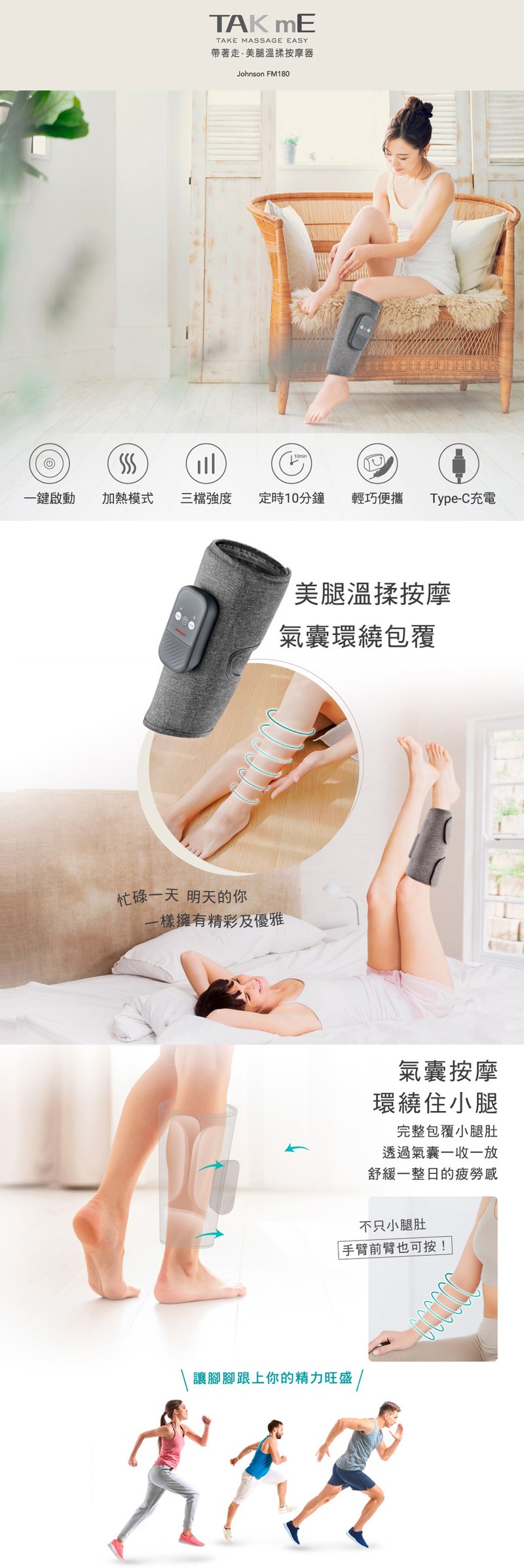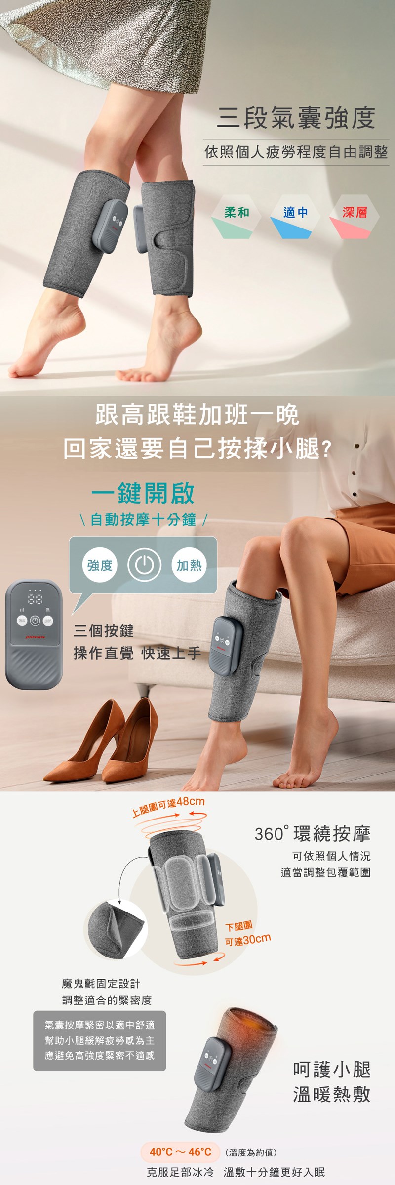 .360環繞式氣囊,完整包覆小腿肚