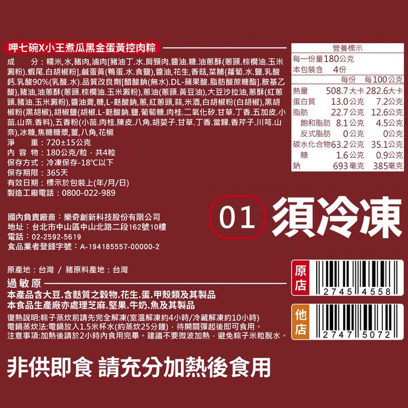 肉粽達人呷七碗聯手米其林必比登超夯名店小王煮瓜黑金滷肉汁。在招牌粽款中加入醇香誘人黑金滷肉汁,使其香味更濃郁,口感豐富,鹹甜適中,吃過人人誇。
