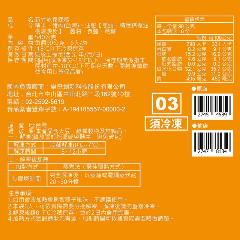 商品名稱:新竹乾家粿粽