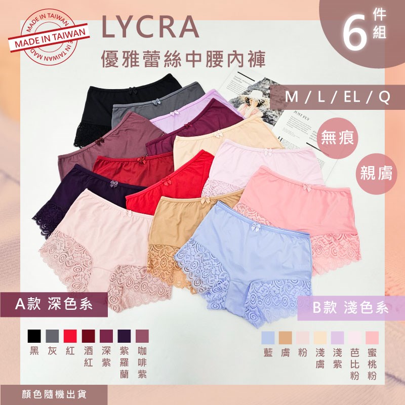 【卡妮兒】台灣製 LYCRA優雅蕾絲中腰內褲 M / L / EL / Q(混色6件組)