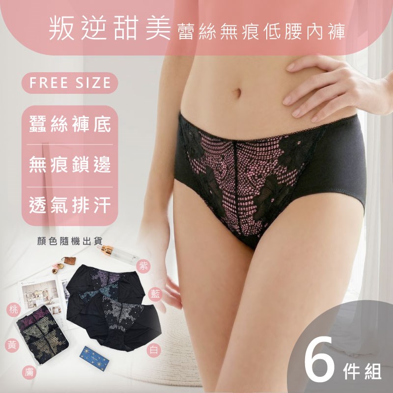 【卡妮兒】叛逆甜美蕾絲無痕低腰內褲 FREE(混色6件組)