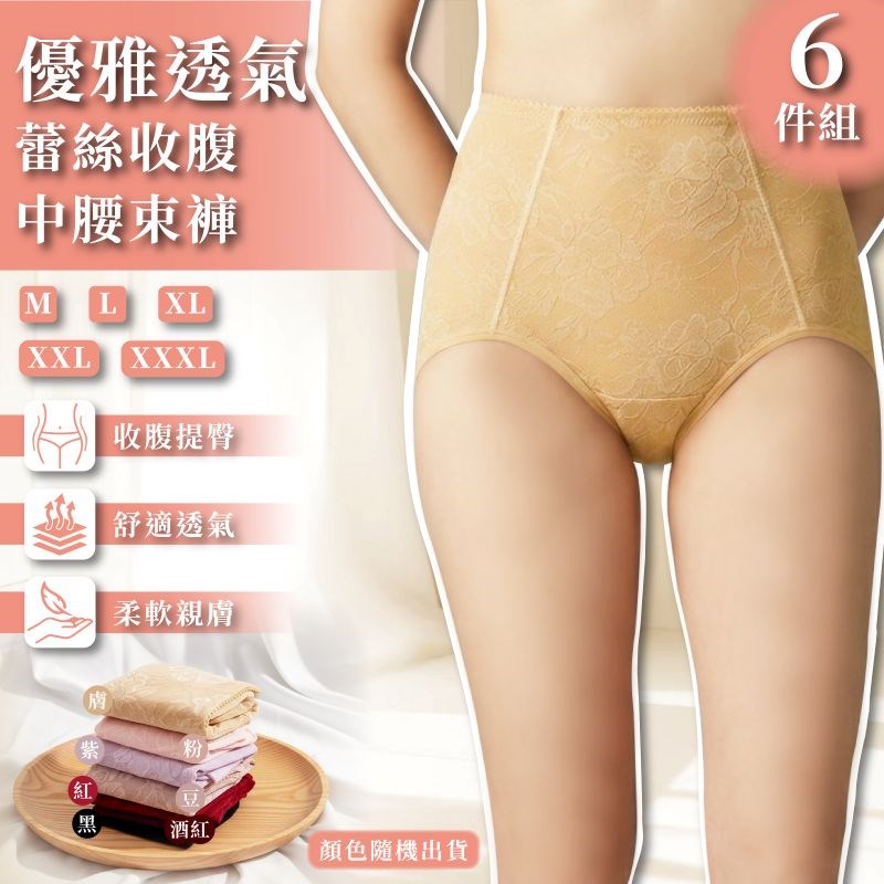 【卡妮兒】優雅蕾絲透氣收腹中腰束褲 M / L / XL / XXL / XXXL(混色6件組)