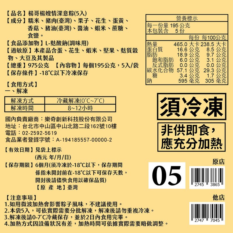 過敏原資訊:本產品含蛋、花生、蝦米、堅果、麩質穀物、大豆及其製品。