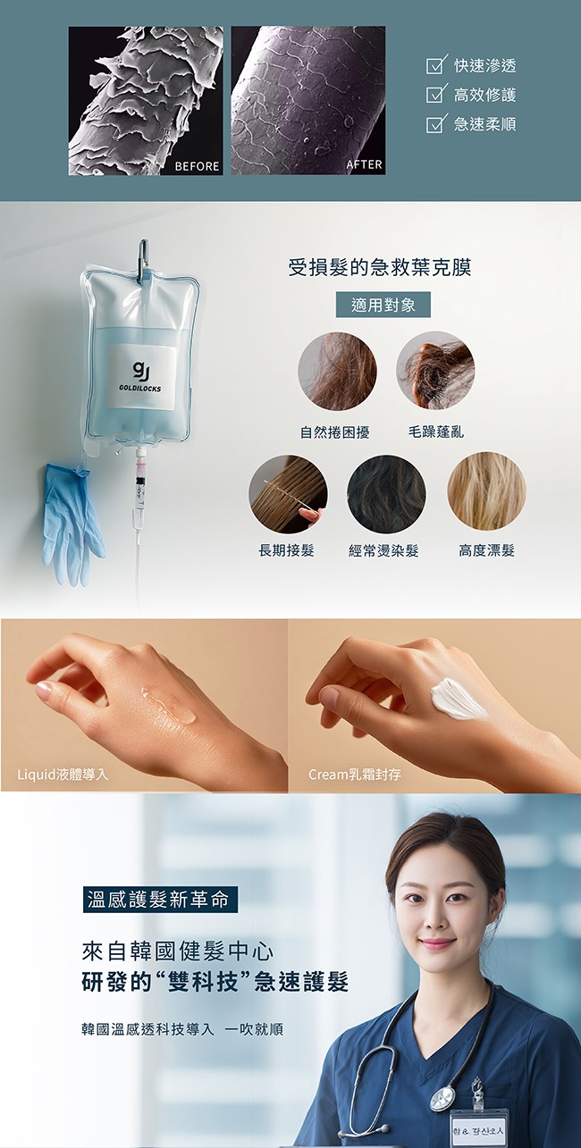 受損髮的急救葉克膜  ✓快速滲透  ✓高效修護  ✓急速柔順