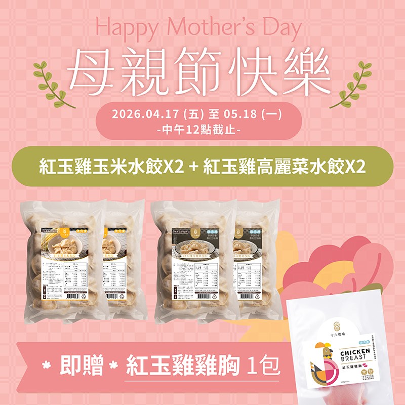 | 組合內容:高麗菜水餃 x 2+ 玉米水餃 x 2 加贈 雞胸 x 1
