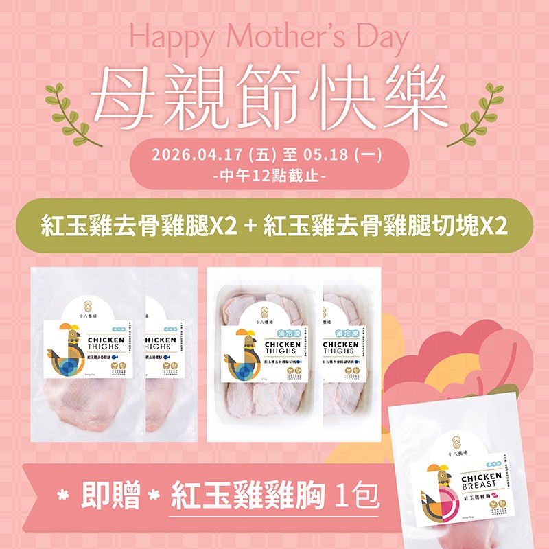 【2026母親節優惠】十八養場紅玉雞 - 去骨雞腿切塊雞胸 優惠組
