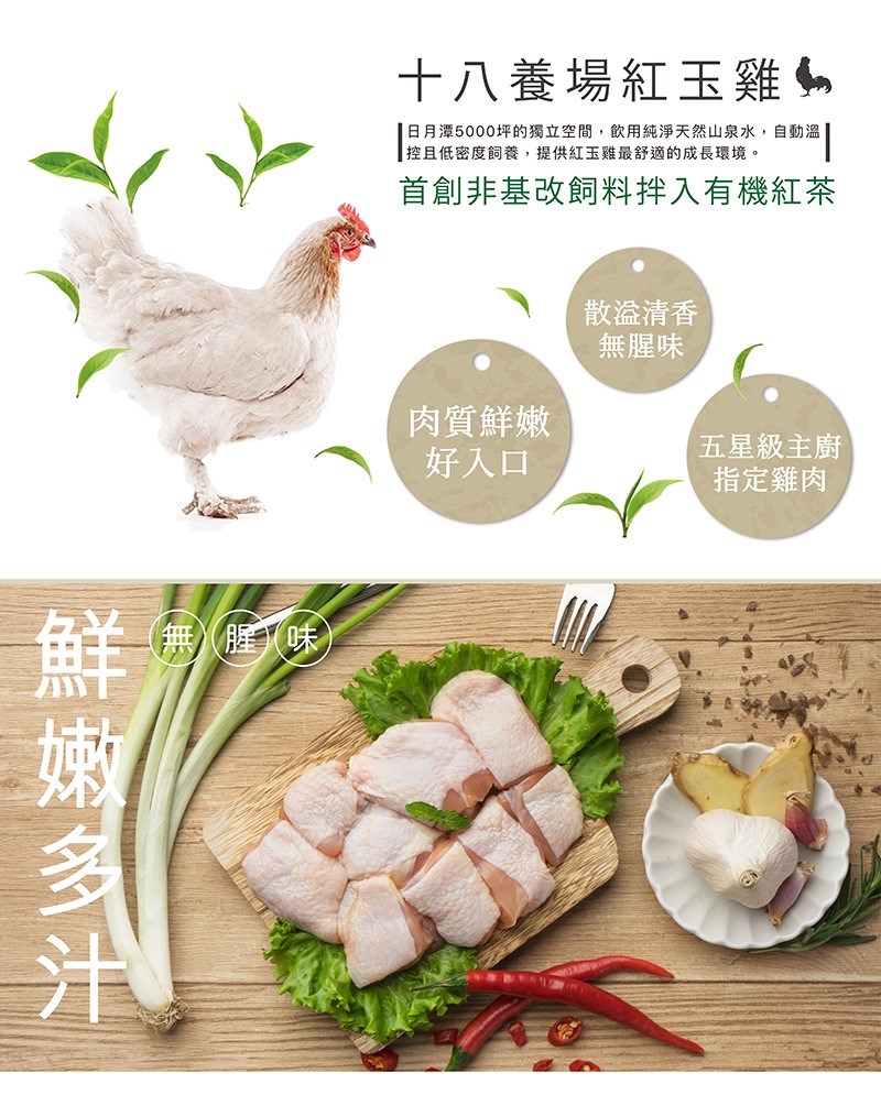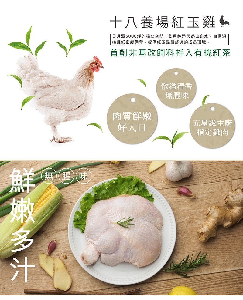 ◎全台首創:自養高品質紅玉雞,全程餵養非基改玉米黃豆。