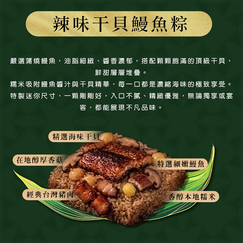 【菊頌坊】辣味干貝鰻魚粽(無禮盒)(6入/袋);5/12起依訂單陸續出貨