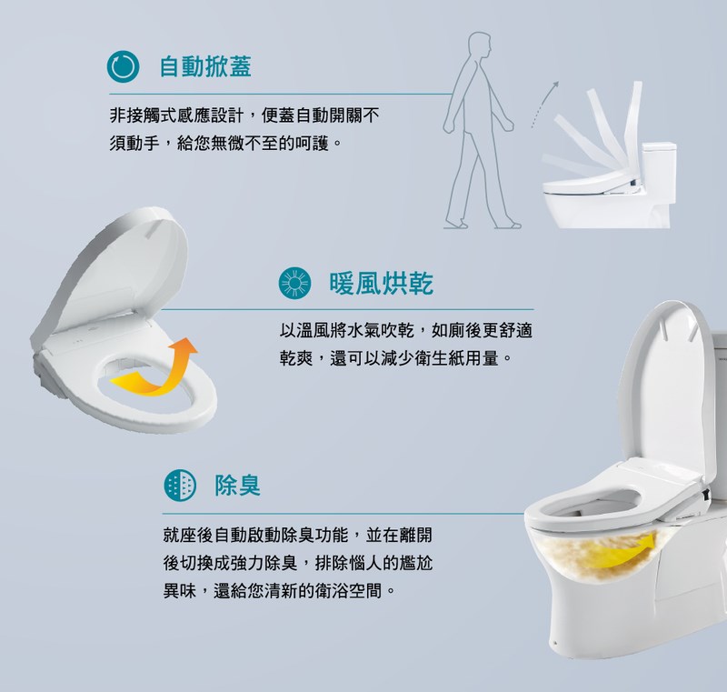 • 便座常保溫暖,冬天也能舒適如廁