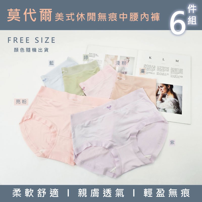【卡妮兒】莫代爾美式休閒無痕中腰內褲 FREE(混色6件組)