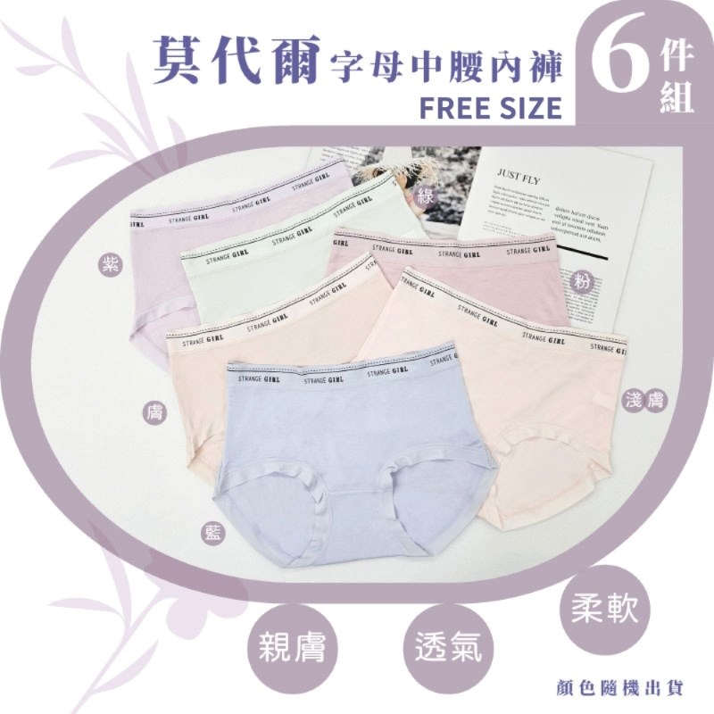 【卡妮兒】莫代爾柔感字母中腰內褲 FREE(混色6件組)
