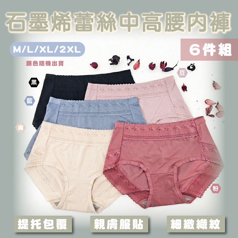 【卡妮兒】石墨烯蕾絲中高腰內褲 M / L / XL / 2XL(混色6件組)