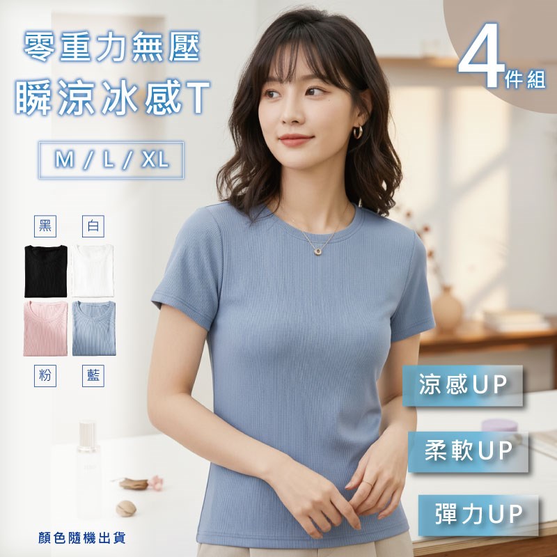 【卡妮兒】零重力無壓瞬涼冰感T -M / L / XL(混色4件組)