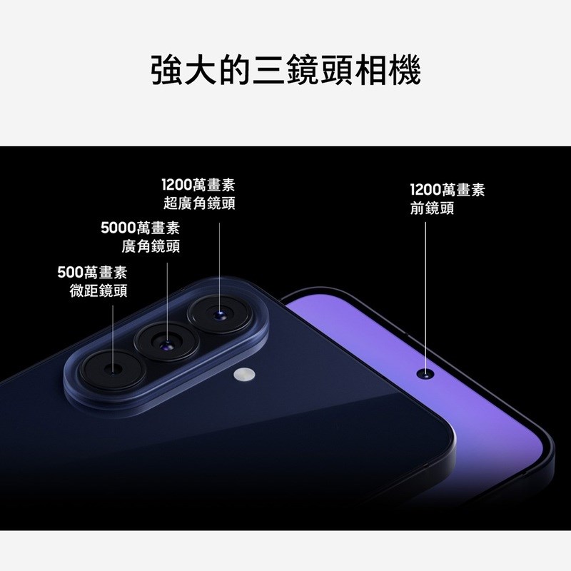 ◎ 後置 5,000 萬畫素鏡頭 + 1,200 萬畫素鏡頭 + 500 萬畫素鏡頭
